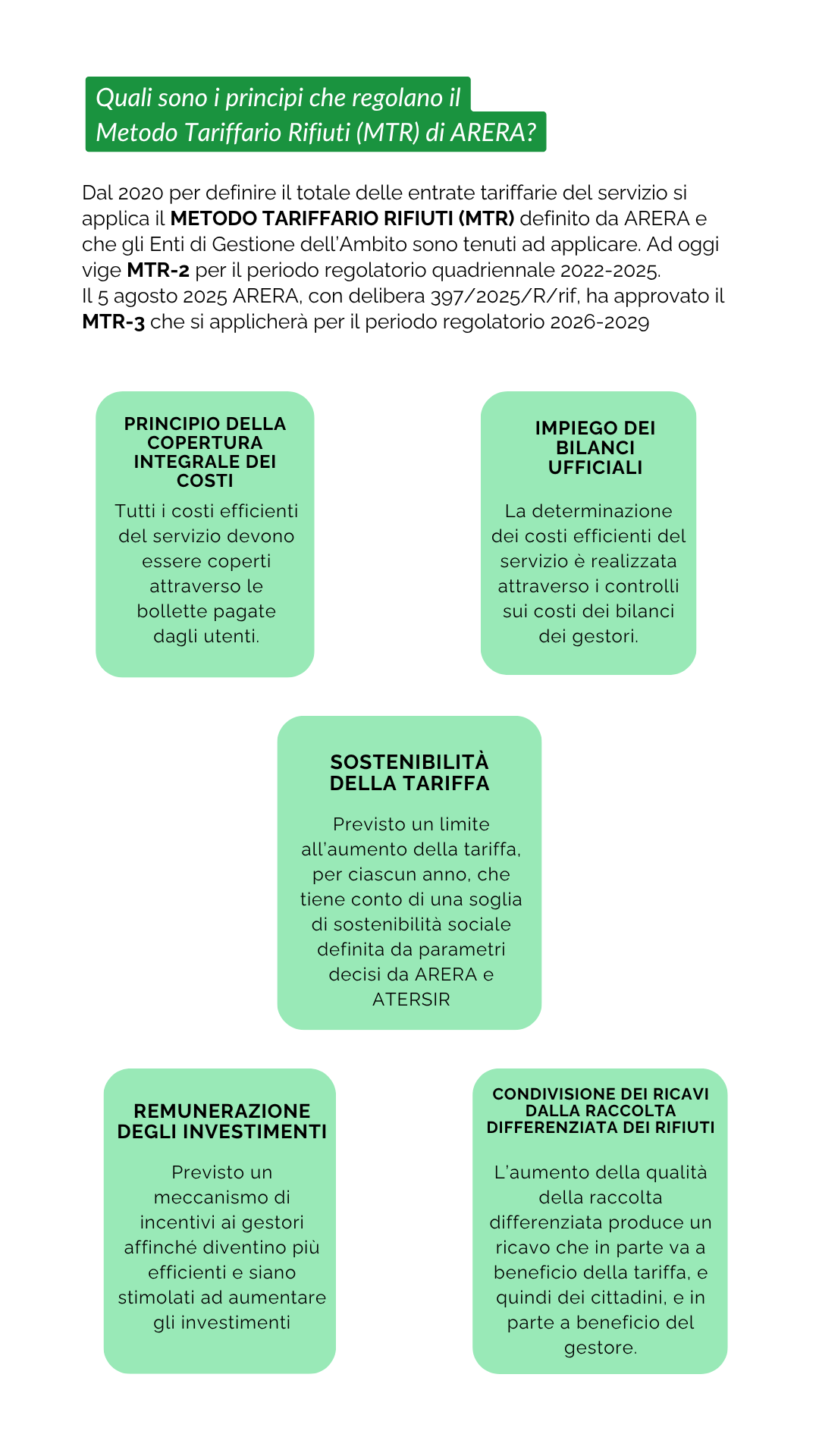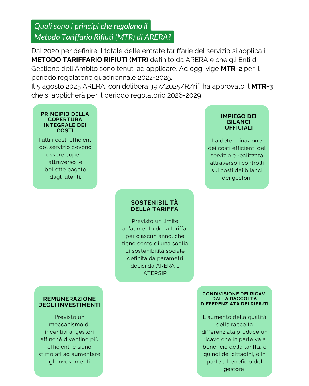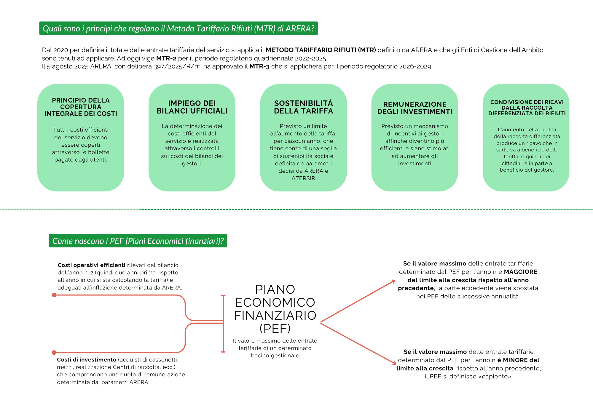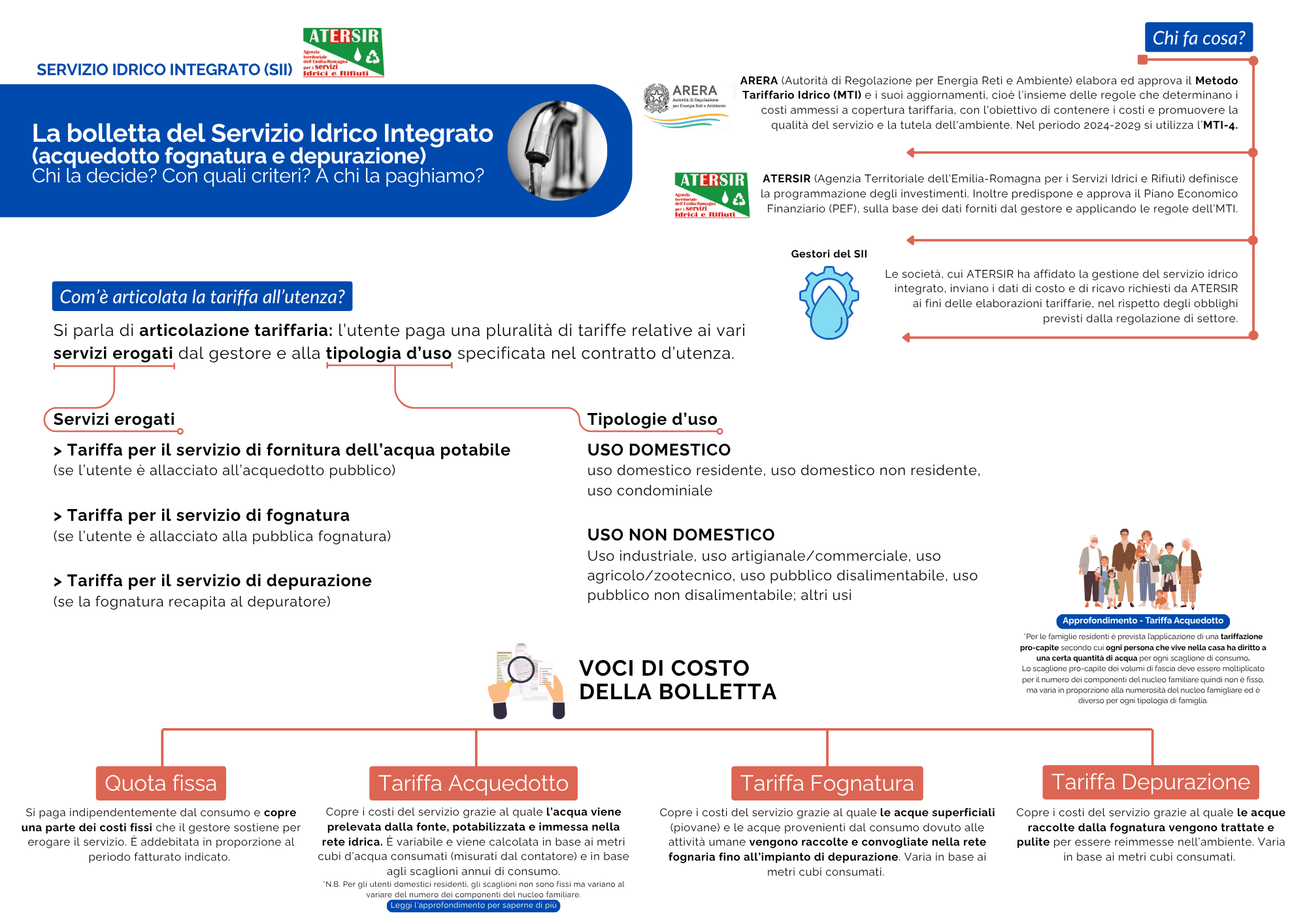 Due strumenti informativi destinati alle cittadine e ai cittadini: “La bolletta del Servizio Idrico Integrato” e “La TARI o la tariffa rifiuti” che spiegano, attraverso infografiche, in modo chiaro e sintetico chi decide le tariffe, con quali criteri e quali metodi, a chi vengono pagate, in modo da rendere più trasparente e comprensibile i meccanismi che sono alla base degli importi finali presenti sulle bollette.