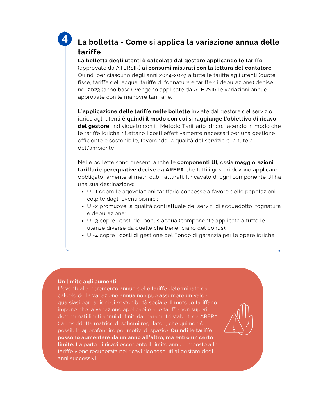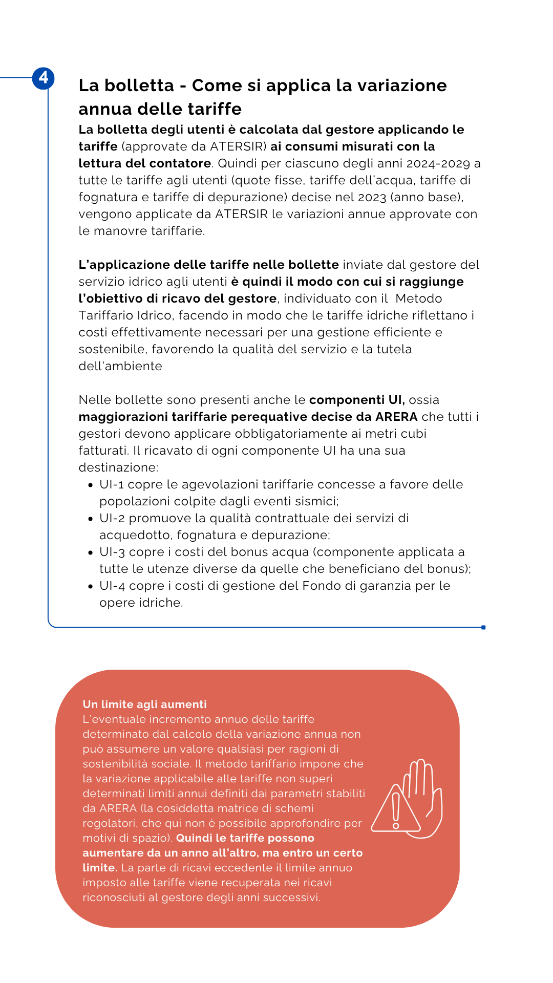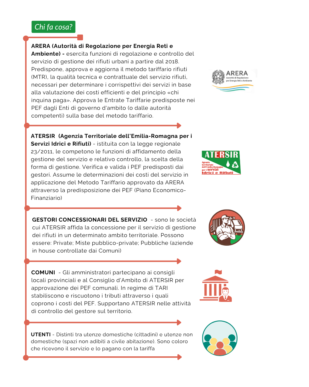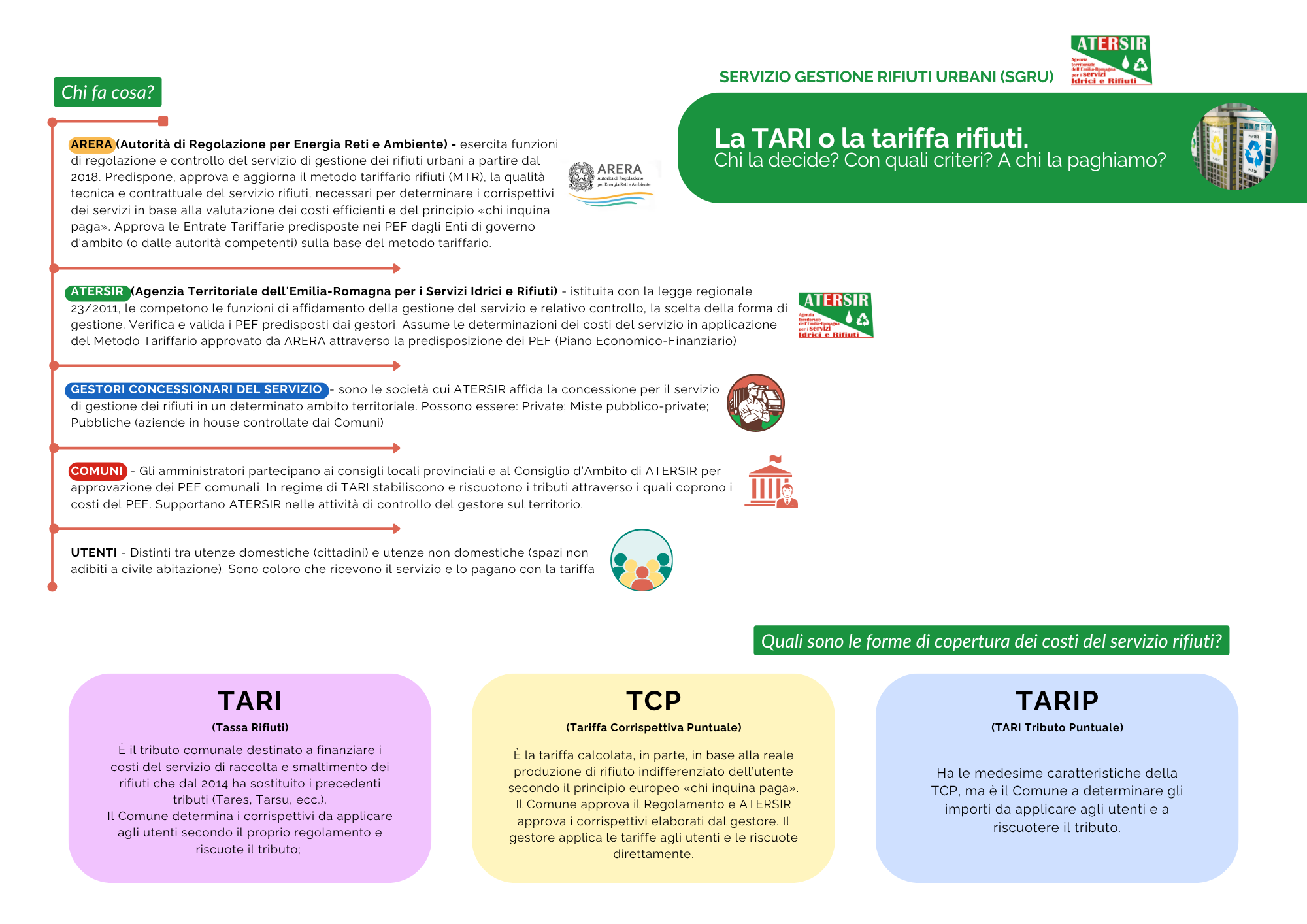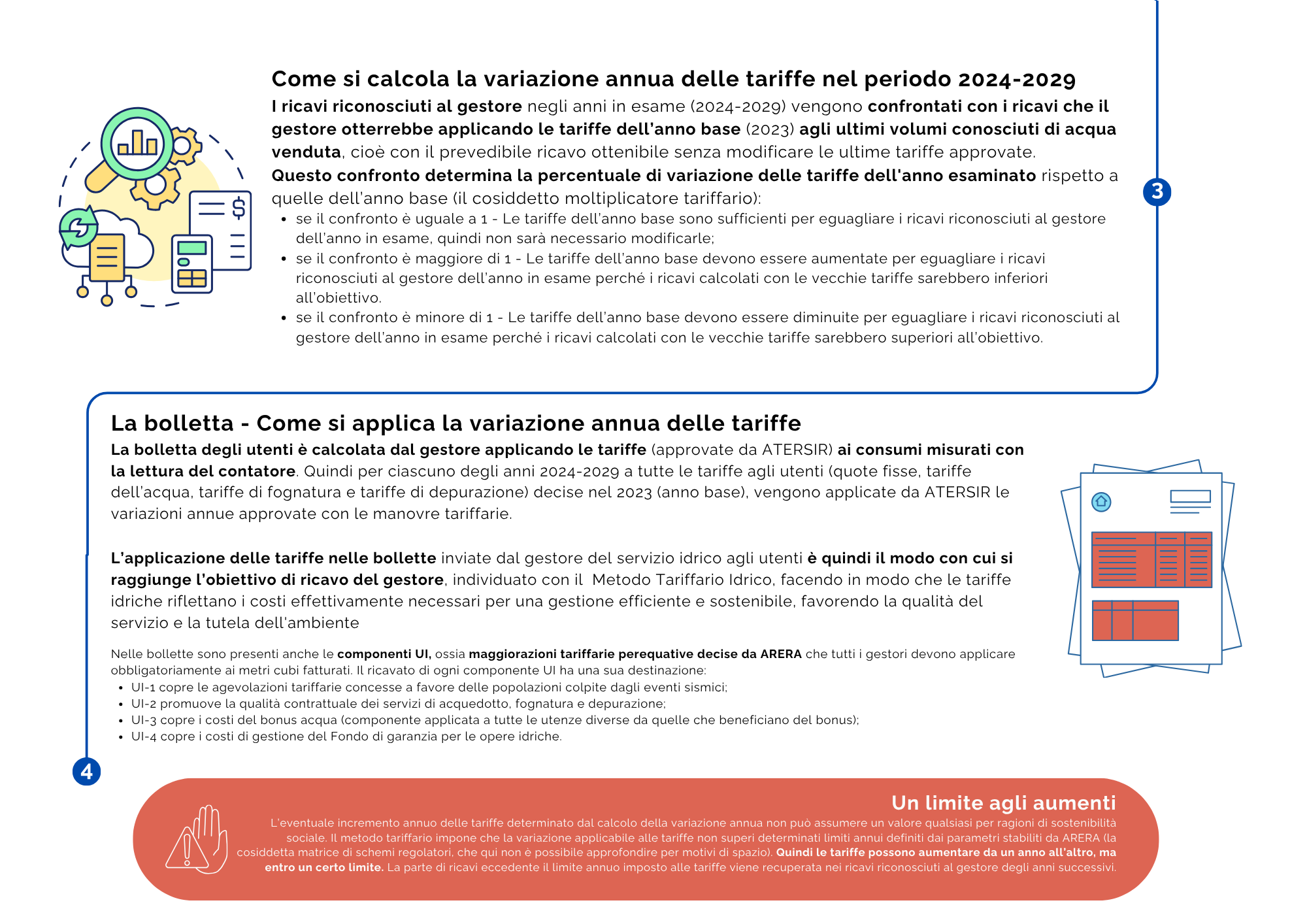 Due strumenti informativi destinati alle cittadine e ai cittadini: “La bolletta del Servizio Idrico Integrato” e “La TARI o la tariffa rifiuti” che spiegano, attraverso infografiche, in modo chiaro e sintetico chi decide le tariffe, con quali criteri e quali metodi, a chi vengono pagate, in modo da rendere più trasparente e comprensibile i meccanismi che sono alla base degli importi finali presenti sulle bollette.